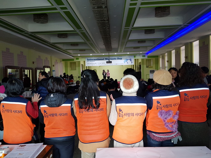 [대전=세계타임즈 이장성 기자] 추운날씨에도 변함없이 다양한 봉사활동을 하고 있는 7천명 SNS 대전광역시 봉사단체 사랑의 사다리 밴드(리더 이정제)는 16일 오후3시, 대전시근로자종합복지관에서 열린 2018세계이주민의날 기념 세계음식자랑 행사에서 바베큐통닭 봉사와 난타공연봉사로 한국 사회의 따뜻한 사랑을 전달하였다.