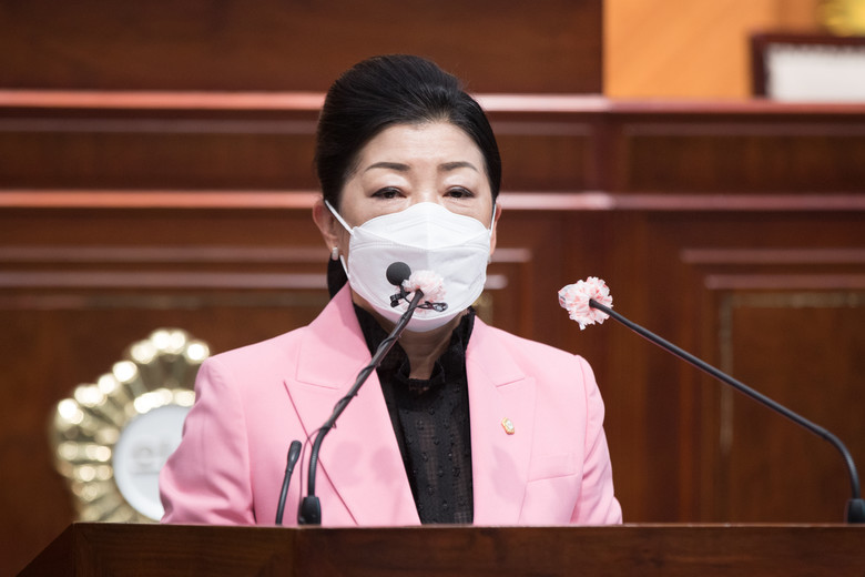 송미숙 의원도 5분 발언을 통해 대한민국은 OECD 국가 중 경제력 10위, 군사력 6위, 국민소득 3만 5천 달러 시대를 살아가지만 노인 빈곤율 1위, 노인 자살률 1위라는 오명도 안고 있을 뿐 아니라 2022년 노인 인구는 901만 8천 명으로 전체인구의 17.5%로 향후 5년 후 265만 2천 명 더 증가할 것으로 예상하며, 군산 노인 인구도 54,324명으로 전체인구 20%를 넘어서며 초고령 시대에 진입했다고 설명했다.