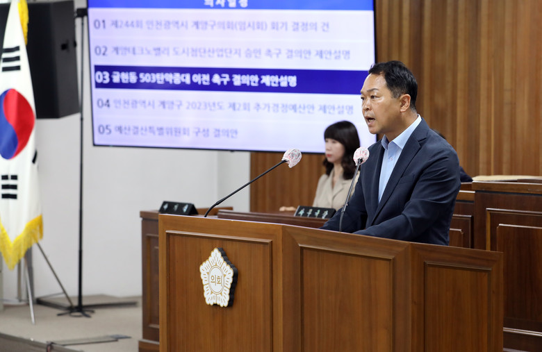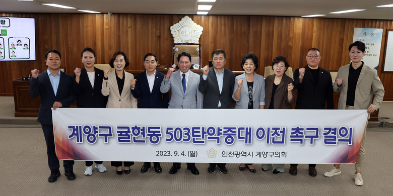 이번 결의문은 △국방부 장관은 지역개발을 저해하고 있는 503 탄약중대 이전에 적극적인 자세로 협의하고 부대 이전사업의 조속한 시행촉구 △인천광역시장은 503 탄약중대 이전이 원활히 추진될 수 있도록 적극 지원할 것을 촉구하는 내용을 담고 있다.