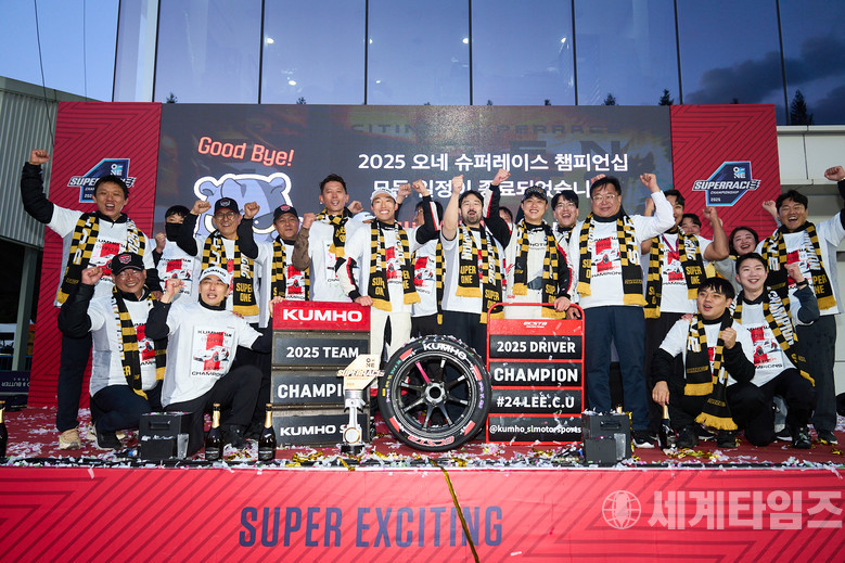 [세계타임즈=방춘재 기자] 금호타이어가 후원하는 금호 SLM이 11월 1~2일 용인 에버랜드 스피드웨이에서 열린 2025 오네 슈퍼레이스 챔피언십 파이널 라운드(8, 9라운드)에서 팀 챔피언과 드라이버 챔피언을 모두 거머쥐며 시즌을 완벽하게 마무리했다.