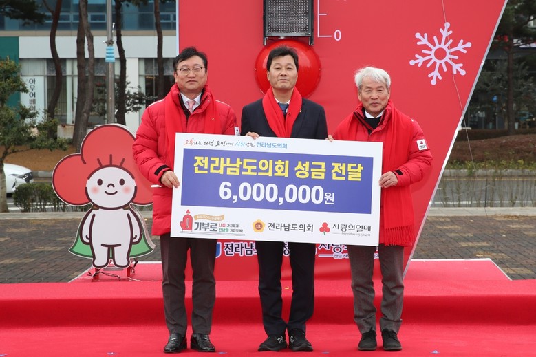 [전남 세계타임즈=우덕현 기자] 전라남도의회(의장 서동욱)는 12월 1일 전남도청 앞 광장에서 열린 「희망 2024 나눔 캠페인 출범식」에서 전남사회복지공동모금회에 기부금을 전달했다.