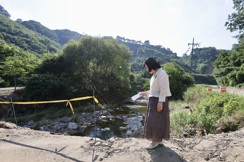 이번 방문에서 김 의장은 지장리 댐 건설현장, 다리 붕괴 우려가 있는 지장리 현장, 광덕리 산 116번지 산사태 현장, 광덕리 만복골 수해현장 등 주요 피해 구간을 찾아 피해 규모와 복구진행상황을 상세히 살폈다.