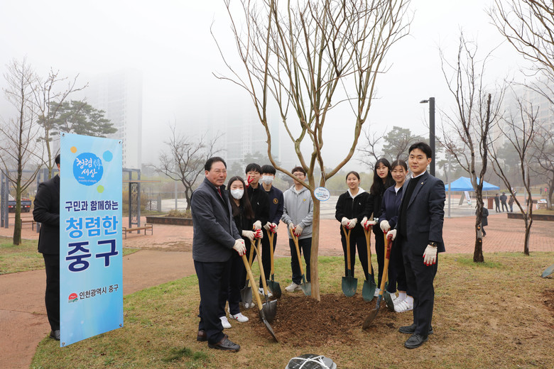 영종 하늘도시 호수공원에서 열린 이번 행사에는 중구의회 강후공 의장을 비롯해 한창한 도시정책위원장, 김정헌 중구청장 및 관계자들이 참석해 직접 나무를 심으며 식목일을 기념했다. 더불어 이날은 인천 하늘고등학교 학생들과 청렴한 중구를 만들어 가기 위한 캠페인을 함께하며 뜻깊은 시간 또한 가졌다.