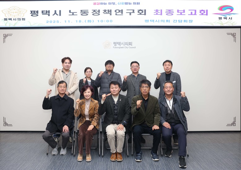 [평택시 세계타임즈=송민수 기자] 평택시의회 의원 연구단체인‘평택시 노동정책 연구회’(대표의원 이기형)는 18일 간담회장에서 정책연구용역 최종보고회를 개최했다.