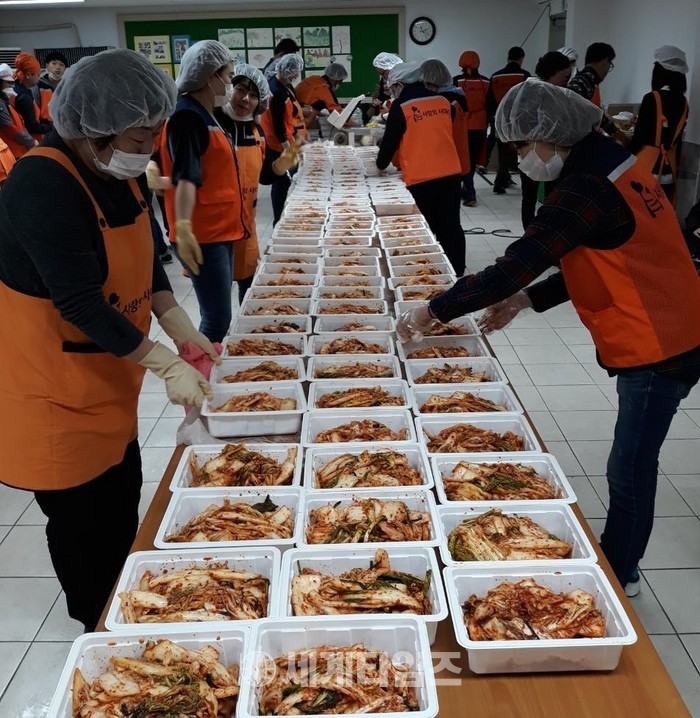 이날 밑반찬 봉사에는 나눔봉사단 유희자 단장을 비롯해서 김봉임, 문정하, 안성숙 등 3개 팀장 등을 중심으로 회원 80명이 주말에도 참석을 해서 돼지고기 장조림, 배추겉절이, 양파초절임 3가지 종류를 정성을 다해서 만들고 배달까지 마무리를 하였다.