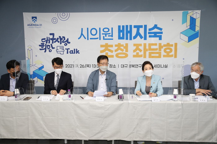 사단법인 아젠다 21(대표 박정호)에서 주관한 이번 좌담회에는 배지숙 의원을 비롯해 김석표 대구광역시 사회복지사협회장, 영남일보 박재일 국장, 권세훈 경북대학교 법학연구소 박사 등이 참석하여 대구시 복지 정책과 발전 방향에 대해 열띤 논의를 펼쳤다.