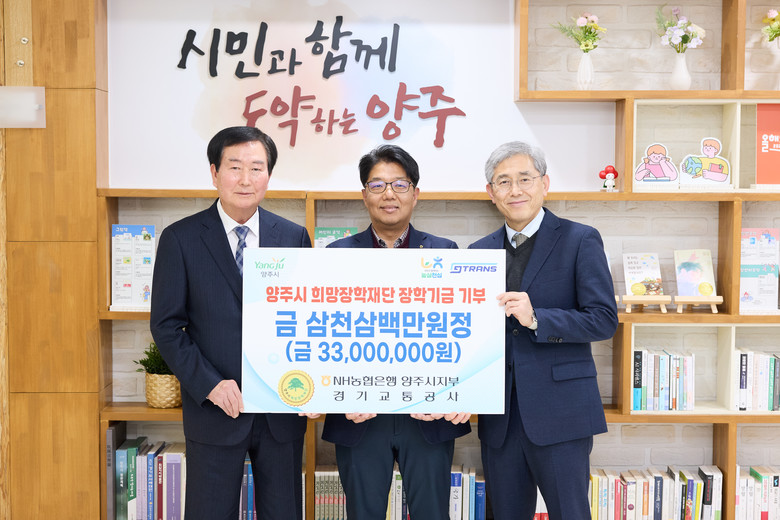 양주시 관계자는 “지역 발전과 인재 육성을 위해 관심과 나눔을 실천해 주신 NH농협은행 양주시지부와 경기교통공사에 감사드린다”며 “이번 기부를 계기로 지역사회 내 따뜻한 나눔 문화가 더욱 확산되기를 바란다”고 밝혔다.