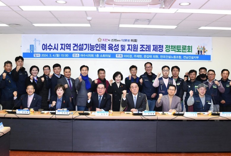 [전남 세계타임즈=우덕현 기자] 전라남도의회 주종섭 의원(더불어민주당, 여수6)은 지난 3월 4일 여수시의회 소회의실에서 열린 ‘여수시 지역 건설기능인력 육성 및 지원 조례 제정 정책토론회’에 참석했다.