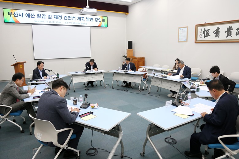 [부산 세계타임즈=이용우 기자] 부산시의회 기획재경위원회와 의원연구단체 ‘부산역’(위원장‧대표의원 성창용)이 공동 주최한 “부산시 예산 절감 및 재정 건전성 제고 방안” 강연회가 지난 10월 30일 부산시의회 중회의실에서 성황리에 개최됐다.