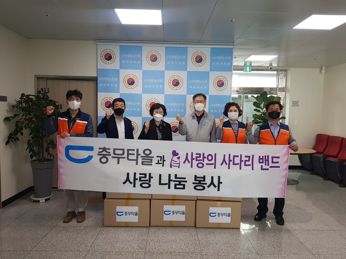 대덕구노인회 김금자 회장은 “오늘 충무타올과 사랑의 사다리 밴드에서 타올 300장을 후원해 주어서 큰 힘과 위안이 된다.”면서 감사함을 전했다.