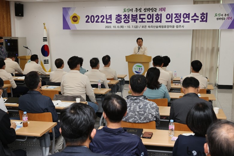 [충북 세계타임즈=이현진 기자] 충북도의회(의장 황영호)는 10월 6일 보은 속리산숲체험휴양마을에서 제12대 의회 의정연수회를 개최했다.