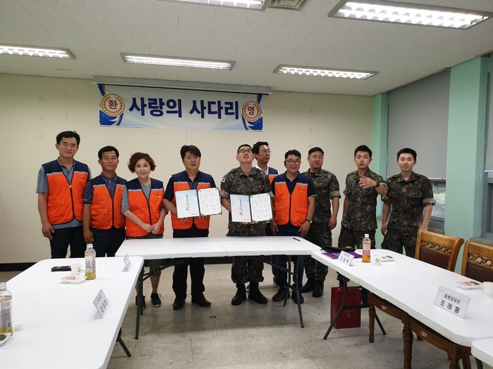 [대전=세계타임즈 이장성 기자] 따뜻한 나눔을 꾸준히 실천하고 있는 대전광역시 SNS 8천명 봉사단체 사단법인 사랑의 사다리 밴드(리더 이정제)는 31일, 오후 2시 유성구 반석동에 위치한 군수사령부내 유성대대와 업무협약식을 하였다.