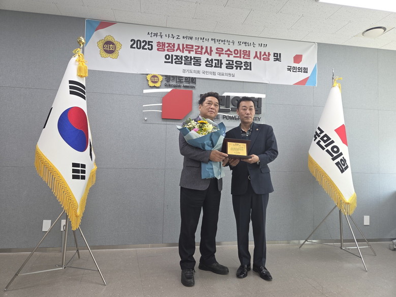 [경기도 세계타임즈=송민수 기자] 경기도의회 교육기획위원회 김호겸 의원(국민의힘, 수원5)은 2025년 12월 12일 「2025 행정사무감사 우수의원」을 수상하였다.