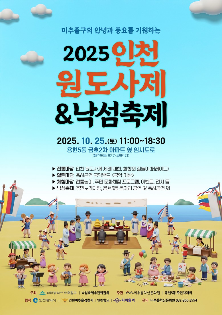 한편, 인천 원도사제는 미추홀구가 주최하고, 미추홀학산문화원이 주관하며, 낙섬축제는 낙섬축제추진위원회가 주최, 용현5동 주민자치회가 주관, 용현5동 행정복지센터가 협력해 추진된다.