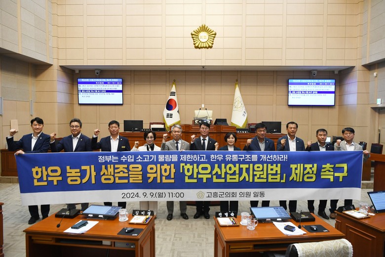 고흥군의회는 본 ‘한우산업기본법 제정 촉구 건의안’을 대통령실과 국무총리, 국회, 농림축산식품부, 각 정당 등에 전달할 예정이다.