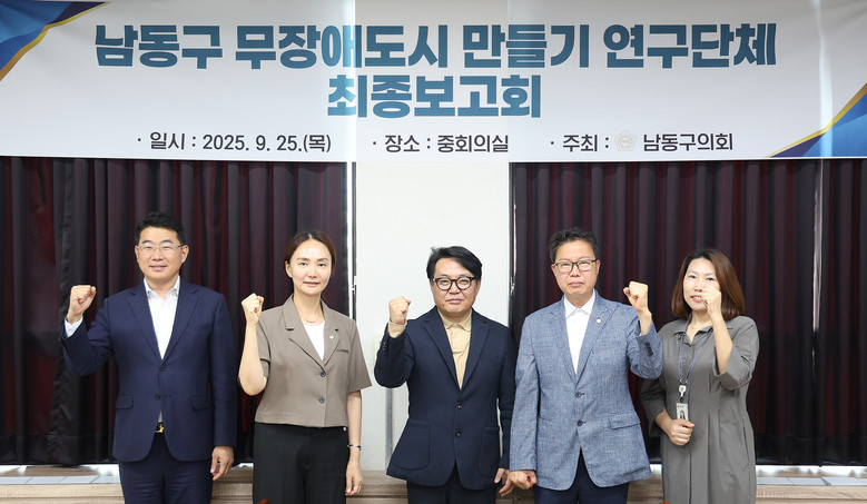 [남동구 세계타임즈=심하린 기자] 남동구의회 의원연구단체 「남동구 무장애 도시 만들기 연구회」(회장 장덕수 의원)는 지난 25일 구의회 중회의실에서 정책연구 용역 최종보고회를 개최했다.