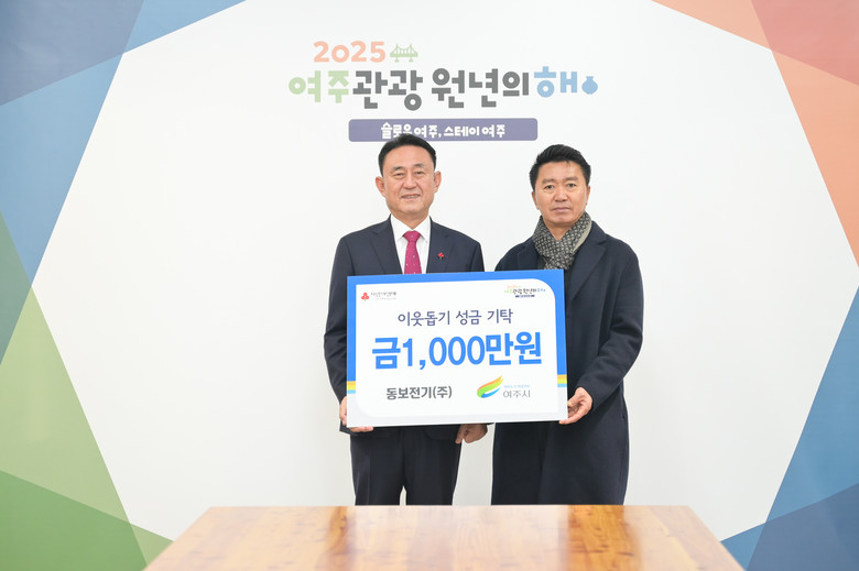[여주시 세계타임즈=송민수 기자] 지난 30일 동보전기(대표 전충종) 및 주식회사 부광에너지(대표 변우석)는 여주시(시장 이충우)를 방문하여 관내 저소득층을 위한 이웃돕기 성금으로 각 1,000만원을 기탁하였다