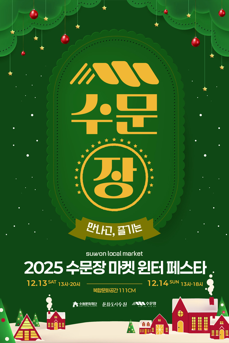 수원문화재단 관계자는 “이번 ‘2025 수문장 마켓 윈터 페스타’는 시민들이 다양한 로컬콘텐츠를 접하고 특별한 크리스마스 마켓을 즐길 수 있도록 준비했다”며, “수문장 마켓에 참여한 이웃 도시의 로컬브랜드 64개 팀도 로컬콘텐츠 창작자로서 서로 즐기고 교류하는 뜻깊은 자리가 되었으면 한다”고 밝혔다.