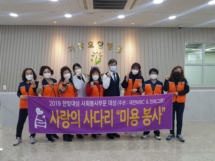 [대전=세계타임즈 이채봉 기자] 코로나19 상황에서도 비대면 봉사로 다양한 나눔을 실천하고 있는 SNS 9천명 대전시 봉사단체 사랑의 사다리 밴드(리더 이정제)는 16일 오전10시, 동구 강양동에 위치한 가양요양병원(행정원장 김형성)에서 50명의 치매 및 와상 어르신들에게 미용봉사로 사회적 효행을 실천 하였다.