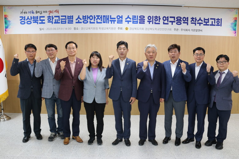 [경북 세계타임즈=한성국 기자] 경북도의회 의원연구단체인 「경상북도학교안전연구회(대표 차주식 의원)」는 7일(수) 경산교육지원청에서 “경상북도 학교급별 소방안전매뉴얼 수립을 위한 연구 용역” 착수보고회를 개최했다.