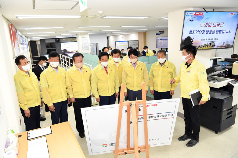 [경남 세계타임즈=최성룡 기자] 경남도의회(김진부 의장)는 23일 경남도청 및 경남도교육청 을지연습장을 방문해 2022년 을지연습 훈련상황을 참관하고, 근무자들을 격려했다고 밝혔다.