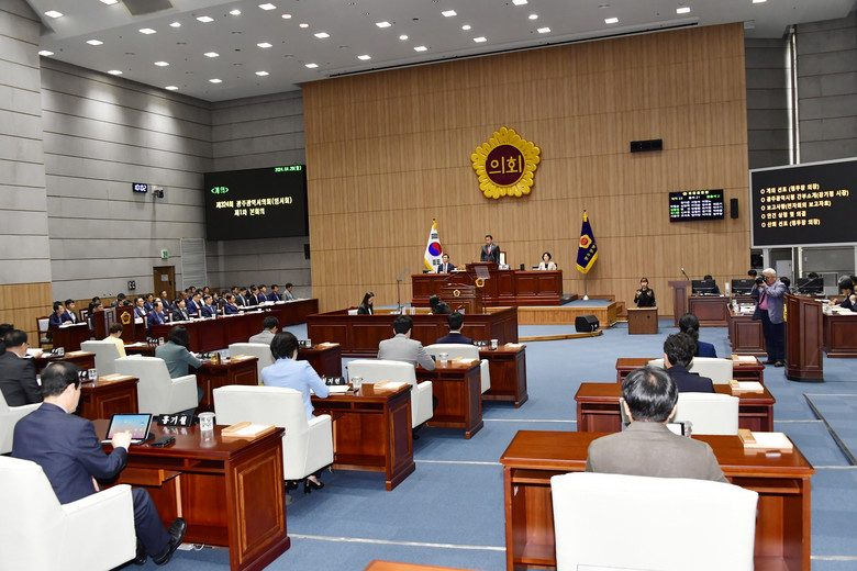 이 날 임시회에서는 2024년도 제1회 광주광역시 일반 및 특별회계 세입·세출 추가경정예산안 및 2024년도 제1회 광주광역시 교육비특별회계 세입·세출 추가경정예산안에 대한 제안설명이 진행됐다.