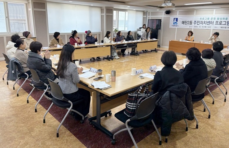 [수원시 세계타임즈=송민수 기자] 수원시 영통구 매탄2동 주민자치회(회장 주병기)는 지난 18일, 주민자치센터 프로그램 활성화를 위해 주민자치센터 수강생 간담회를 개최했다.