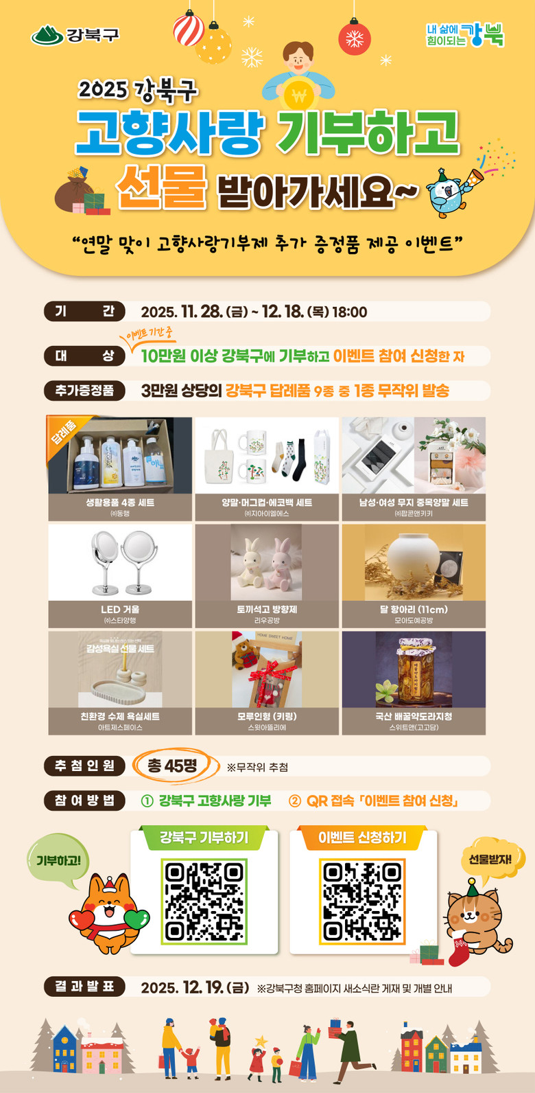 당첨자는 12월 19일 강북구청 홈페이지 새소식란에 게시되며 개별 안내도 함께 이루어진다.