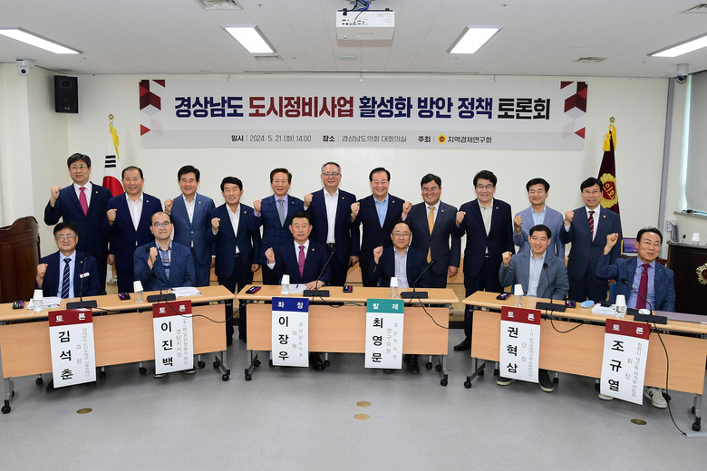 [경남 세계타임즈=최성룡 기자] 경상남도의회 의원연구단체 지역경제연구회(회장 이장우)는 지난 21일 경남도의회 대회의실에서 ‘경상남도 도시정비사업 활성화 방안 정책 토론회’를 개최했다고 밝혔다.