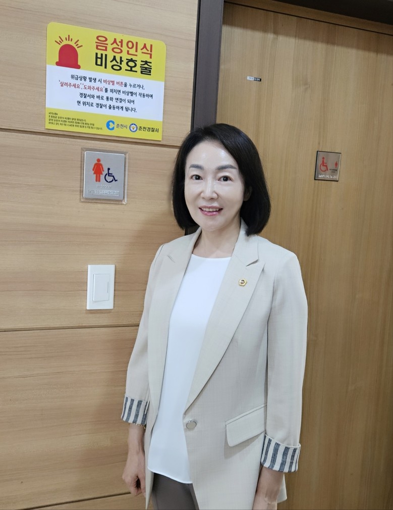 [강원도 세계타임즈=김민석 기자] 강원특별자치도의회 사회문화위원회 이승진 의원(더불어민주당, 비례)이 주민안전과 범죄예방을 위해 확보한 1억여원의 도예산으로 춘천시 공중화장실 범죄예방용 비상벨 설치가 완료되었다.