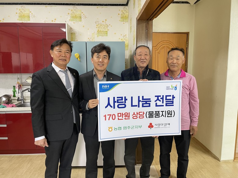 이번 행사는 전에 사용하던 냉장고가 노후화로 잘 작동이 되지 않아 어려움을 겪고 있다는 지역 어르신들의 사연을 접하여 사회공헌활동의 일환으로 실시되었으며, 이번 행사에 농협중앙회 완주군지부는 170만원 상당의 대용량 양문형 냉장고를 전달했다.