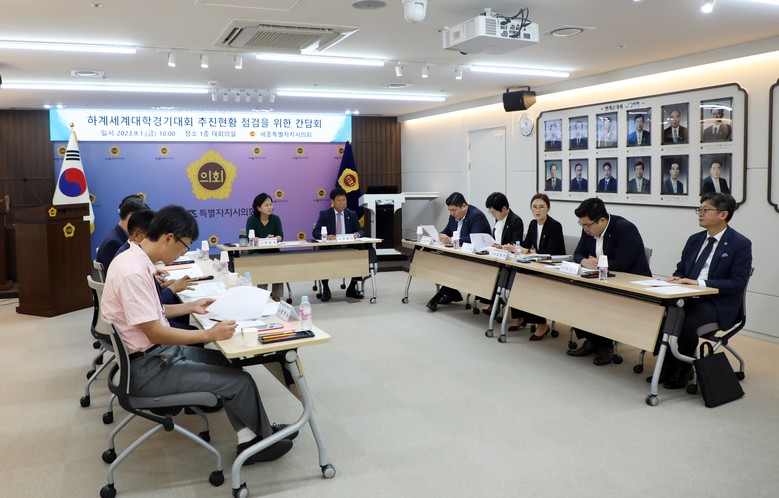 [세종 세계타임즈=이채봉 기자] 세종특별자치시의회 2027 하계세계대학경기대회 추진 특별위원회(위원장 김현미, 이하 특별위원회)는 지난 1일 의회 청사 대회의실에서 대회 추진현황 점검을 위한 간담회를 개최했다.