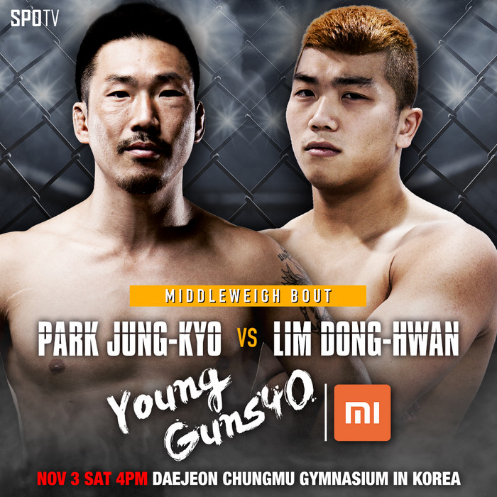 [세계타임즈 김인수기자] 박정교와 임동환의 맞대결은 11월 3일 대전 충무체육관에서 열리는 XIAOMI ROAD FC YOUNG GUNS 40 메인이벤트로 치러진다.