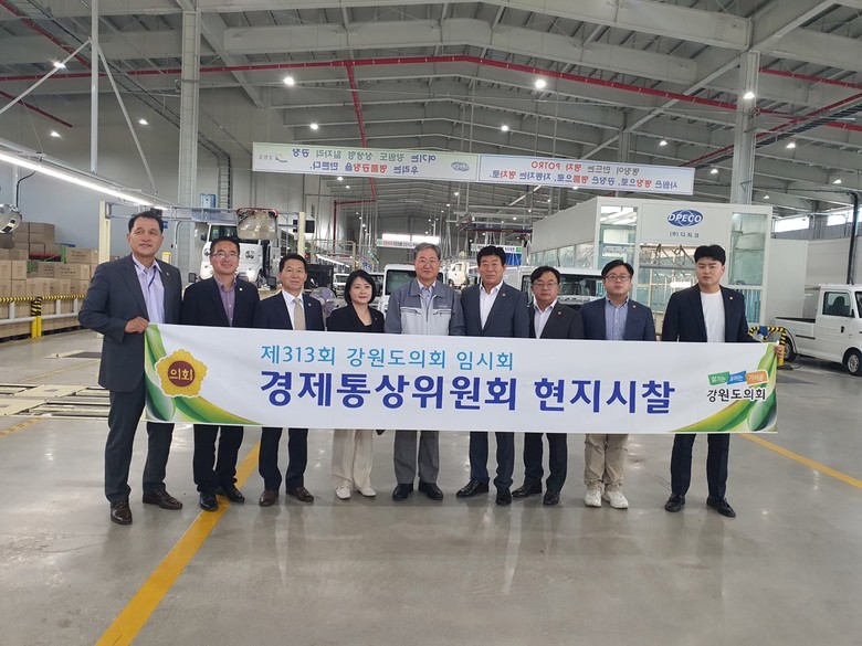 [강원도 세계타임즈=김민석 기자] 9월 21일(수) 강원도의회 경제통상위원회(위원장 김기철)는 도 이모빌리티 대표 기업인 디피코를 방문하여 생산공장과 시설을 살펴보고, 사업추진 현황과 애로사항을 청취하였으며,