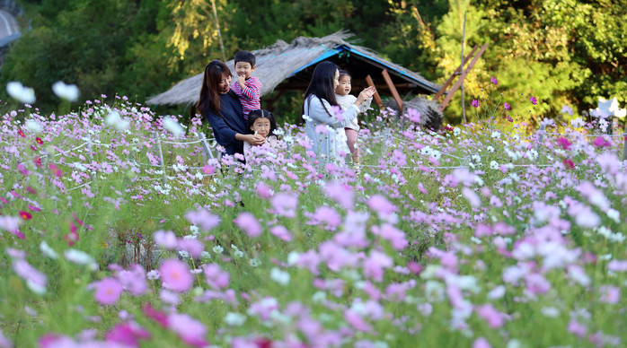 [인제군=세계타임즈 김민석 기자] 인제군 소양호 일대 도로변에 가을을 알리는 코스모스가 활짝 펴 행락객들이 기념사진을 촬영하며 즐거운 시간을 보내고 있다.