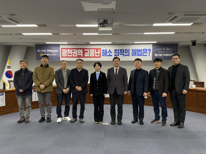 토론회는 명진 교육문화위원장의 사회로 ▲이창호 광주광역시 교통정책연구실장의 발제에 이어 ▲안평환 광주광역시의회 행정자치위원장, ▲임광균 송원대학교 교수, ▲오석진 호남대학교 교수, ▲김효종 동아기술공사 부사장, ▲장화선 광주기후위기비상행동 공동대표, ▲김선탁 광천재개발 사무국장, ▲이선진 전일방개발 주민대책추진협의회 공동대표가 토론자로 참여해 광천권역의 교통난 해소를 위한 다양한 의견을 제언했다.