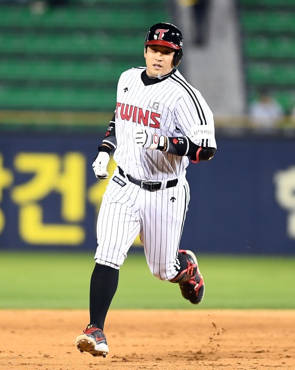 바뀐 투수 김성민이 폭투를 범해 주자들이 한 베이스씩 이동하자 박용택이 홈으로 안내했다.