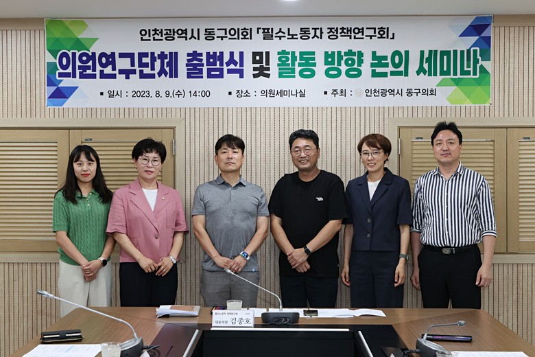 [동구 세계타임즈=심하린 기자] 인천 동구의회 의원연구단체인 『필수노동자 정책연구회』는 지난 9일 동구의회 건물 4층 의원세미나실에서 출범식 겸 활동 방향 논의를 위한 세미나를 갖고 본격적인 연구활동에 돌입했다.