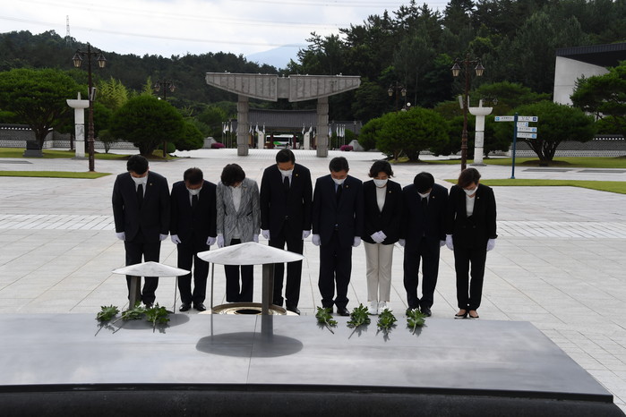 광주시의회에 따르면 후반기 광주시의회 의장단과 상임위원장단은 20일 광주독립운동기념탑을 시작으로 광주학생독립운동기념탑, 현충탑, 4‧19의거 희생 영령추모비, 국립5‧18민주묘지를 차례로 방문해 합동 참배했다.