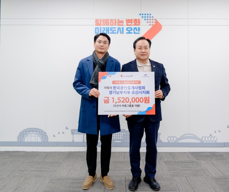 김진기 한국공인중개사협회 오산시지회장은 “회원들의 작은 정성이 그룹홈 아동들에게 따뜻한 위로와 힘이 되길 바란다”며 “앞으로도 지역사회를 위한 나눔 활동에 꾸준히 동참하겠다”고 전했다.
