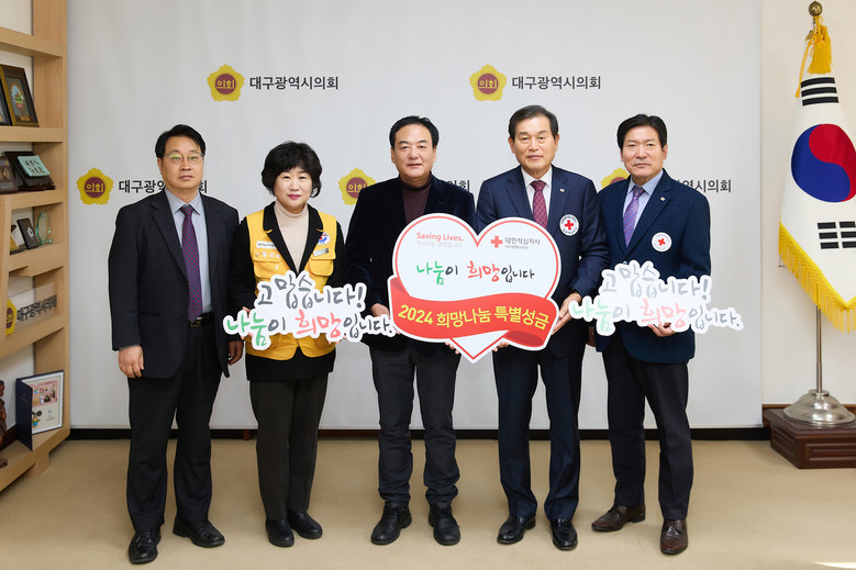 이만규 의장은 “대구시의회는 적십자회비 모금에 시민들의 관심과 참여를 높이기 위해 매년 특별성금 전달에 동참해 왔다”며, “앞으로도 소외되고 어려운 이웃이 따뜻하게 겨울을 보낼 수 있도록 최선을 다해 의정활동을 펼쳐 나가겠다”고 말했다.