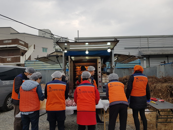 [대전=세계타임즈 이채봉 기자] 9천명 SNS 대전시 봉사단체 사랑의 사다리 밴드(리더 이정제)는 21일 오후3시,코 로나19 최전선에서 애쓰고 있는 대덕구보건소 100명의 직원들에게 바비큐 통닭 50마리 봉사로 우리 사회의 따뜻한 사랑을 전달하였다.