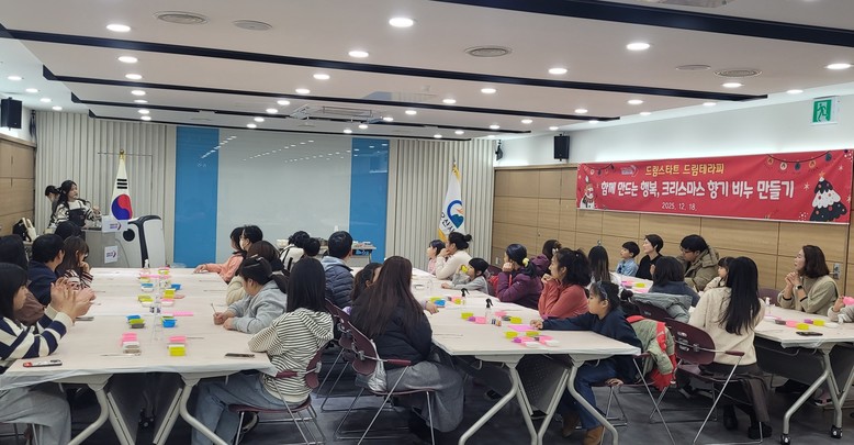 [오산시 세계타임즈=송민수 기자] 오산시(시장 이권재)는 지난 18일 시청 물향기실에서 드림스타트 아동과 부모 등 38명을 대상으로 ‘함께 만드는 행복, 크리스마스 향기 비누 만들기’ 프로그램을 운영했다고 밝혔다.