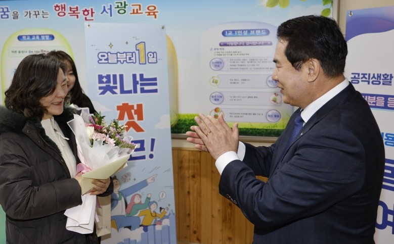 이정선 교육감은 “공직자로서 첫걸음을 떼는 소중한 순간을 함께할 수 있어 뜻깊었다”며 “새내기 공무원이 따뜻한 마음을 지닌 교육행정 전문가로 성장할 수 있도록 든든한 버팀목이 되겠다”고 말했다.