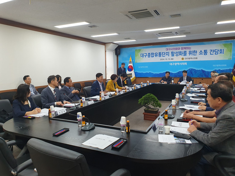 [대구 세계타임즈=한윤석 기자] 대구시의회 경제환경위원회(위원장 김재용)가 제312회 임시회 기간 중인 10월 15일(화), 대구종합유통단지와 골목상권 상인회 대표들을 잇달아 만나 간담회를 갖고 지역 경제 주체들이 겪고 있는 어려움을 해결할 방안 모색에 머리를 맞댔다.