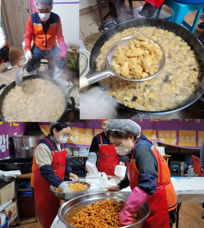 이날 봉사는 유희자 단장을 비롯해서 강은정, 송혜숙, 이은숙, 이지유, 최혜나, 한철웅, 황서연 회원들이 오전9시30분~2시30분까지 약 5시간동안 닭강정을 정성을 다해서 만들었다.