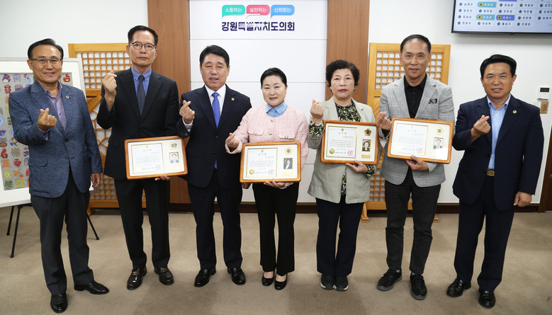 9월 26일 도의회 의장실에서 한중경제문화교육협회(이사장 신경숙) 회원 4명에게 감사패를 수여하고, 강원자치도와 중국간 경제·문화·교육 교류 확대를 위한 활동에 대하여 감사의 뜻을 전했다.