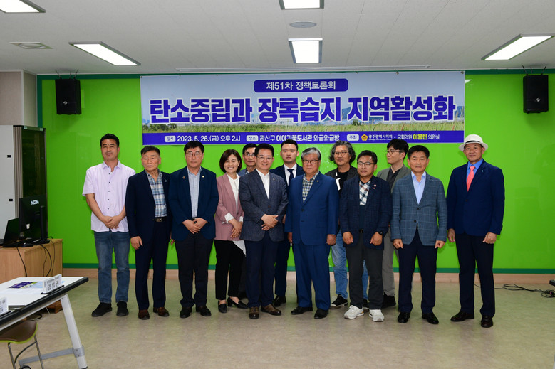 [광주 세계타임즈=손권일 기자] 26일 광주시의회에 따르면 광주광역시의회와 이용빈 국회의원실이 공동 주관하여 ‘탄소중립과 장록습지, 지역활성화’ 정책토론회를 개최했다.