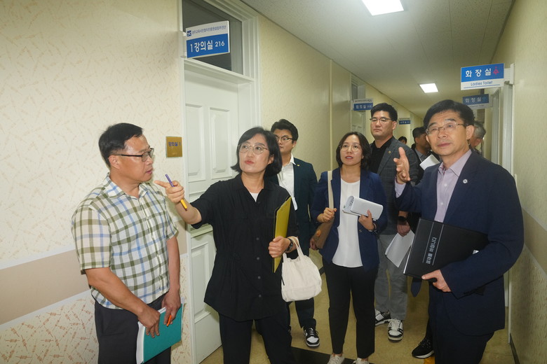 먼저 교문위 위원들은 설립추진단을 방문하여 진흥원 설립 추진 현황 및 부서별 주요 업무 현황을 청취하고 학교폭력 심의실, 금란교실 등 주요시설을 둘러보았다. 특히 위원들은 전국 최초로 출범하는 교육청 산하 협치 전담기관인 만큼 학부모, 시민, 사회단체, 지자체의 협치를 통한 실천적 의제를 발굴에 힘써줄 것을 당부했다.