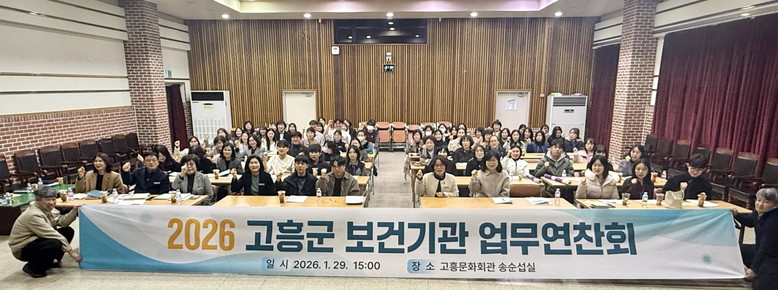 [고흥군 세계타임즈=우덕현 기자] 고흥군(군수 공영민)은 지난 29일 고흥문화회관 송순섭실에서 고흥군 보건기관 45개소 직원들을 대상으로 2026년 보건기관 업무연찬회를 개최했다.